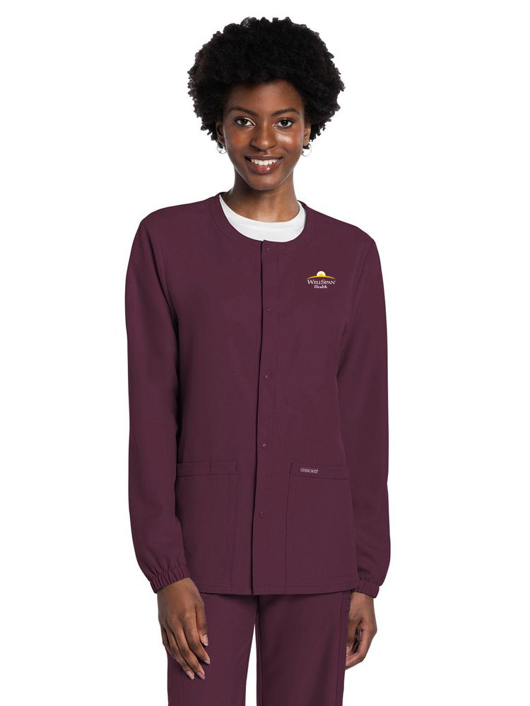 • This Unisex fit snap front scrub jacket features tonal-colored snaps and elasticized sleeve hems. There are two roomy patch pockets with reverse hem trim. Pen/instrument slot on wearer's right pocket. Decorative tonal topstitching adds the finishing touch. Featuring PROTX2 technology with antimicrobial and moisture wicking properties. Center back length: 28 1/2" • Tonal-colored snaps and elasticized sleeve hems • Two roomy patch pockets with reverse hem trim • Pen/instrument slot on wearer's right pocket • Featuring PROTX2 technology with antimicrobial and moisture wicking properties • Center back length: 28 1/2"